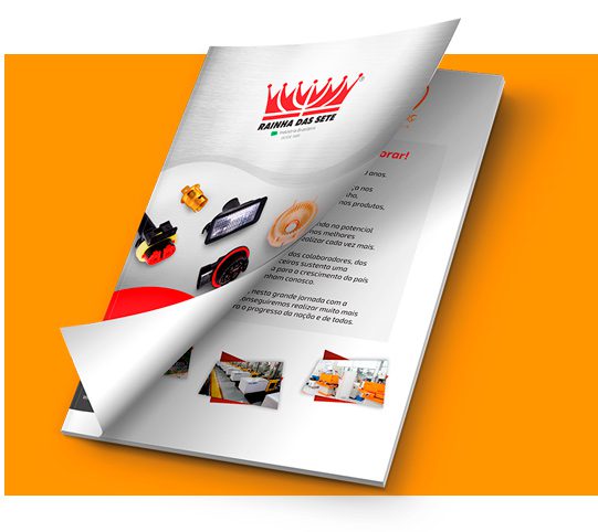O formato do catálogo gerado é em PDF com alta resolução, margens e sangria.